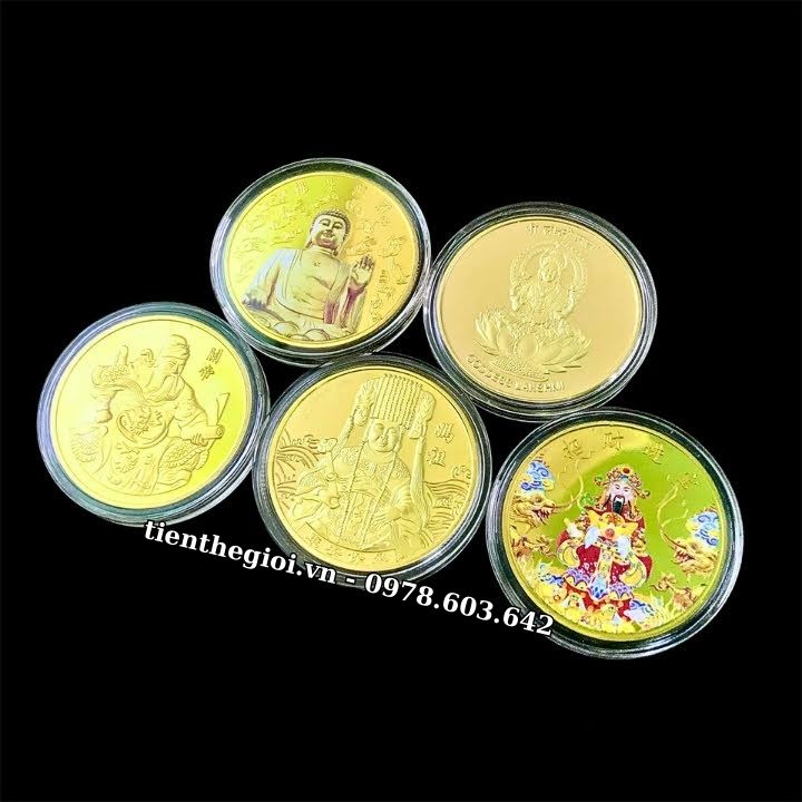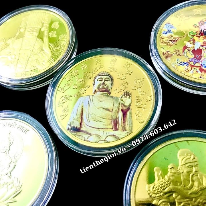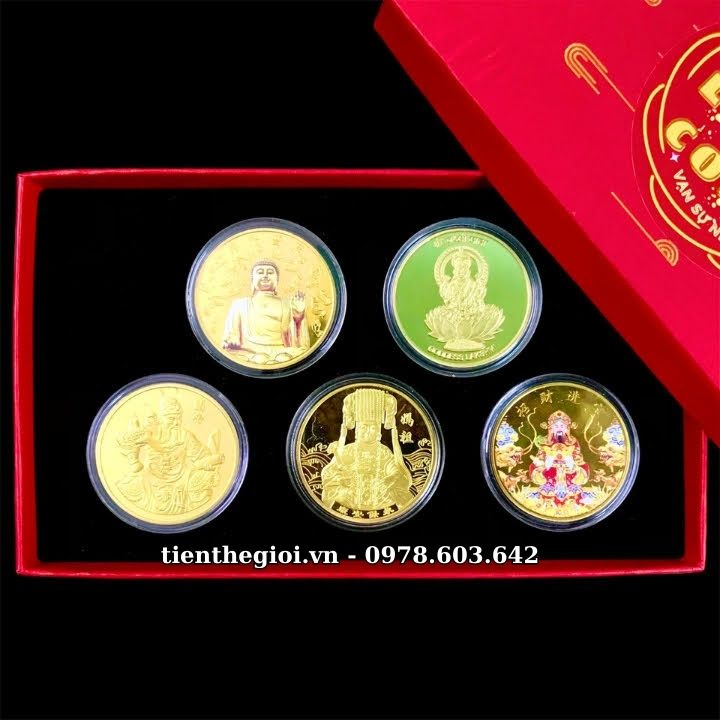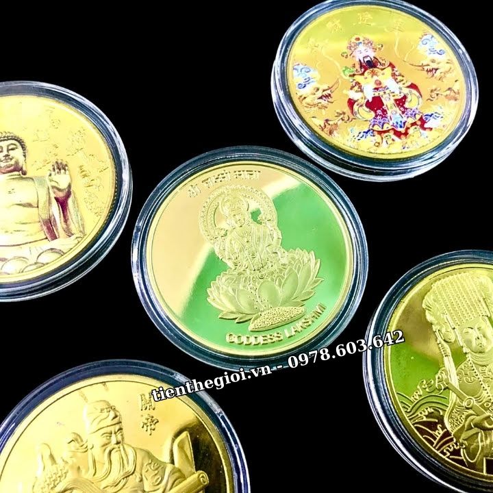 Đặc Điểm Nổi Bật: Bộ xu mang nhiều ý nghĩa theo phong thủy, đem đến may mắn về tài lộc, sức khỏe, công danh sự nghiệp, trấn trạch trừ tà khí, bảo vệ sự bình yên cho ngôi nhà. Thần Tài đem đến nhiều tài lộc, cầu mong sự sung túc, may mắn cho gia đình và công việc làm ăn kinh doanh; Thần Lakshmi mang đến may mắn và đưa những người tôn đạo thoát khỏi cảnh cơ cực và những nỗi phiền muộn về tiền bạc; Quan Công sẽ giúp tiếp thêm sức sống, vượng khí để làm việc không ốm đau, bệnh tật, mang lại cho gia đình nhiều tài lộc, công việc làm ăn kinh doanh thuận lợi, dẹp trừ tiểu nhân; Phật A Di Đà giúp con người hướng thiện thoát khỏi khốn khổ và luôn đón nhận được những điều phúc lành, bình an hơn…Bộ xu rất thích hợp để làm quà tặng độc đáo, ý nghĩa cho người thân, bạn bè dịp lễ, tết, tân gia,...
