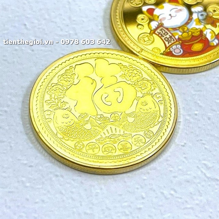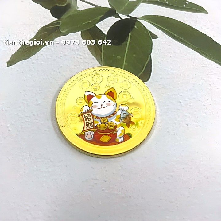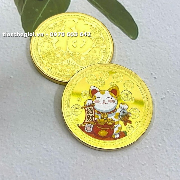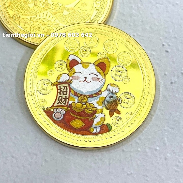 Đặc Điểm Nổi Bật: Xu lưu niệm Mèo Thần Tài mạ vàng in màu mang ý nghĩa phong thủy tốt đẹp rất phù hợp làm quà tặng dịp tết hay mừng tân gia ....