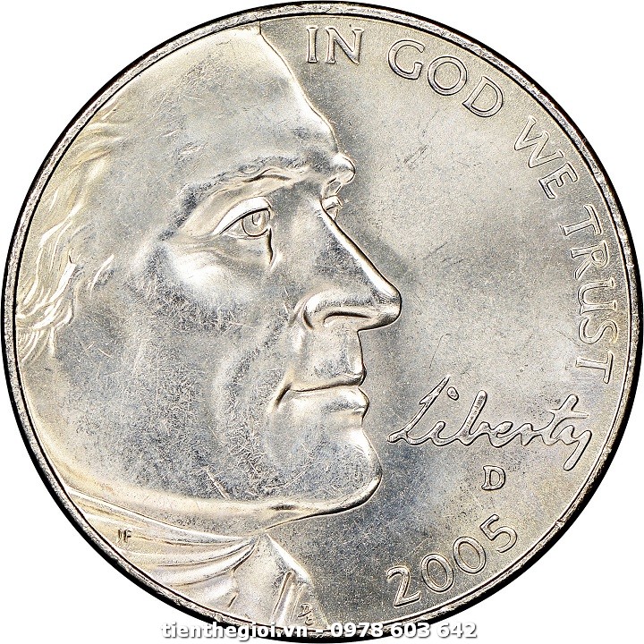 Kỷ niệm 200 năm cuộc thám hiểm của Lewis và Clark Bức chân dung nhìn nghiêng bên phải của Thomas Jefferson, Tổng thống thứ 3 của Hoa Kỳ từ năm 1801 đến năm 1809, kèm theo chữ "Tự do" được thể hiện bằng chữ viết tay của chính Jefferson, được bao quanh bởi khẩu hiệu: "IN GOD WE TRUST" |