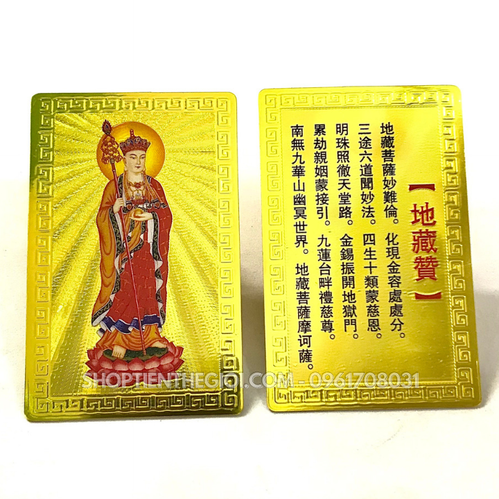 - Đóng gói sản phẩm : x1 Thẻ Kim Bài Địa Tạng Vương Bồ Tát