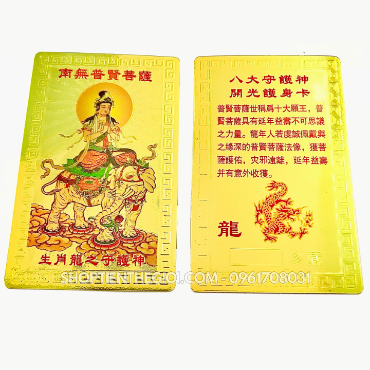 - Đóng gói sản phẩm : x1 Thẻ Kim Bài Phật Bản Mệnh Tuổi Thìn – Phật Phổ Hiền Bồ Tát
