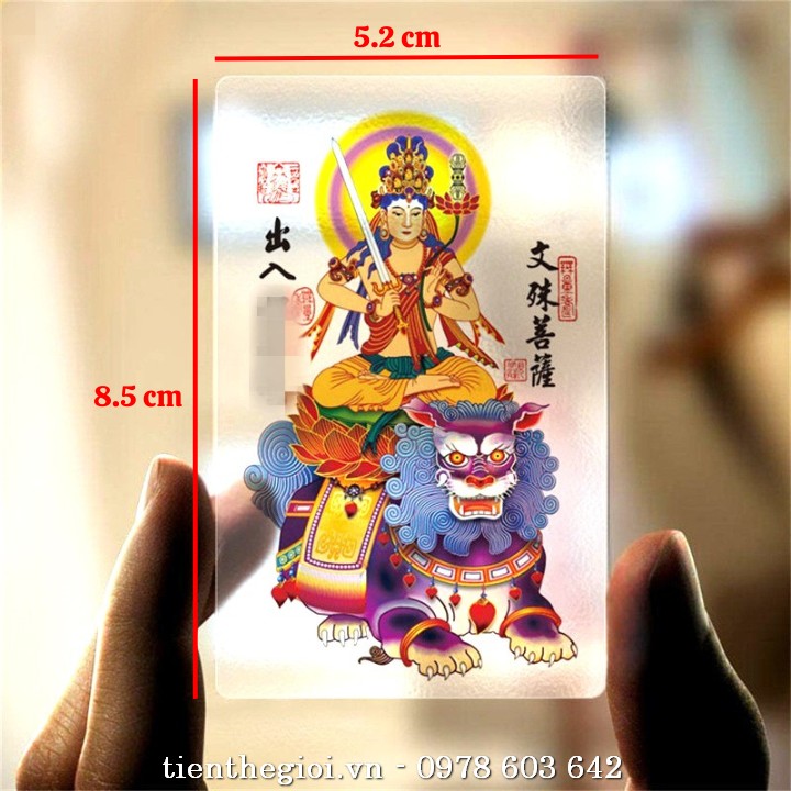 Tên sản phẩm: Thẻ Nhựa Hình Bồ Tát Văn Thù Sư Lợi Cưỡi Sư Tử