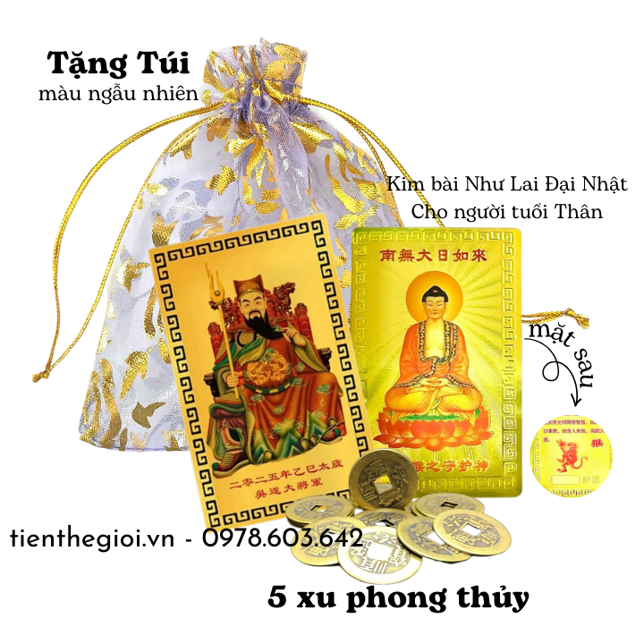 Túi Cho Người Phạm Thái Tuế Tuổi Dần Thân Tỵ Hợi ( Kim Bài Thái Tuế 2025, 5 Xu Phong Thuỷ, Kim Bài Dần, Thân, Tỵ, Hợi) - SP007808