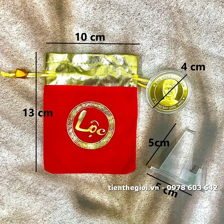 Mô tả sản phẩm: Túi Lộc Xu Cô Sáu Có Đế Trưng Bày là một sản phẩm trang trí hiện đại. Với túi gấm đỏ chữ Lộc sang trọng, đế xu chất liệu nhựa PE Polyetylen siêu bền.